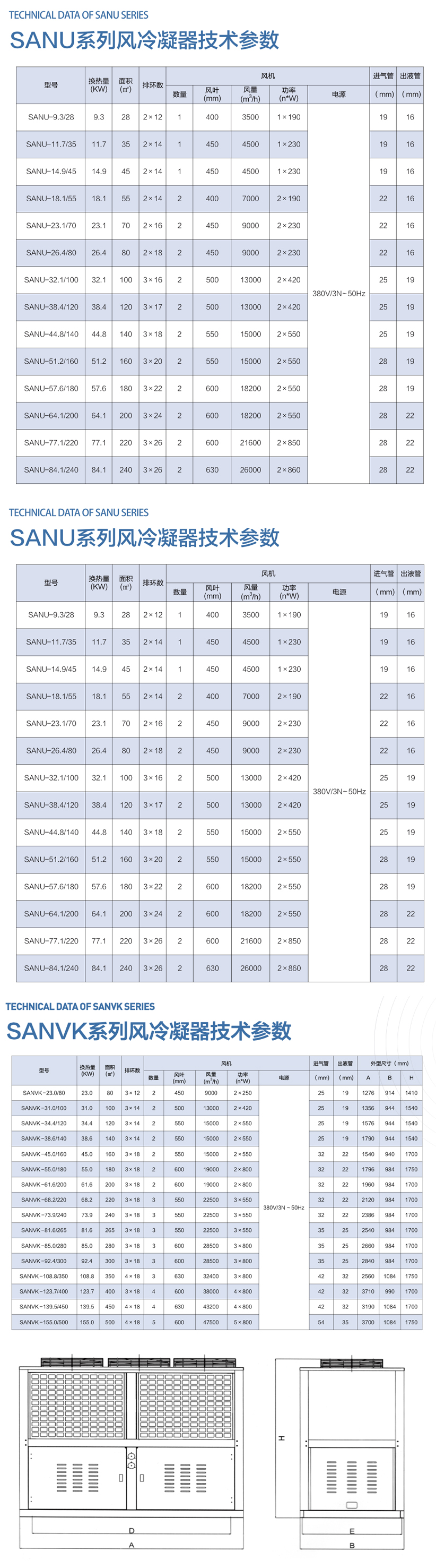 風(fēng)冷凝器(熱交換器/Condenser),是制冷系統(tǒng)重要部件之—,主要是把氣體或蒸氣轉(zhuǎn)變成液體,將熱量強(qiáng)制循環(huán)風(fēng)散熱。冷凝工作過(guò)程是個(gè)放熱的過(guò)程,所以冷凝器溫度、壓力都是較高的。廣泛應(yīng)用于制冷制熱設(shè)備、石油化工、發(fā)電廠、太陽(yáng)能等行業(yè)。