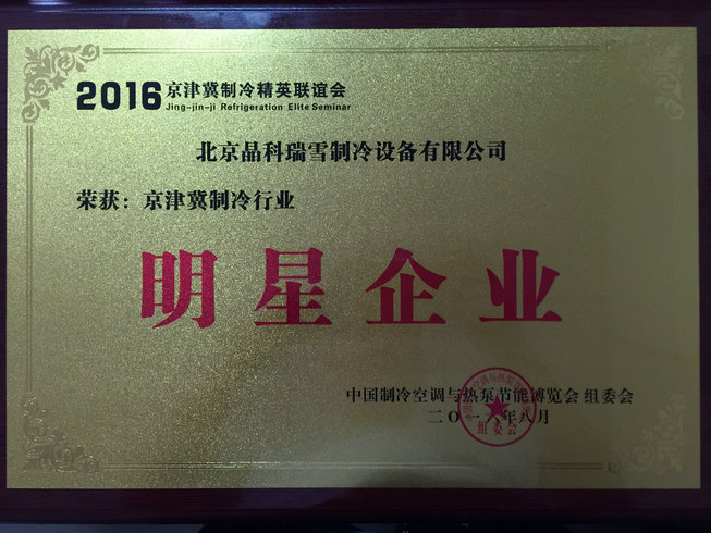 榮獲2016年度京津冀制冷行業(yè)明星企業(yè)稱號