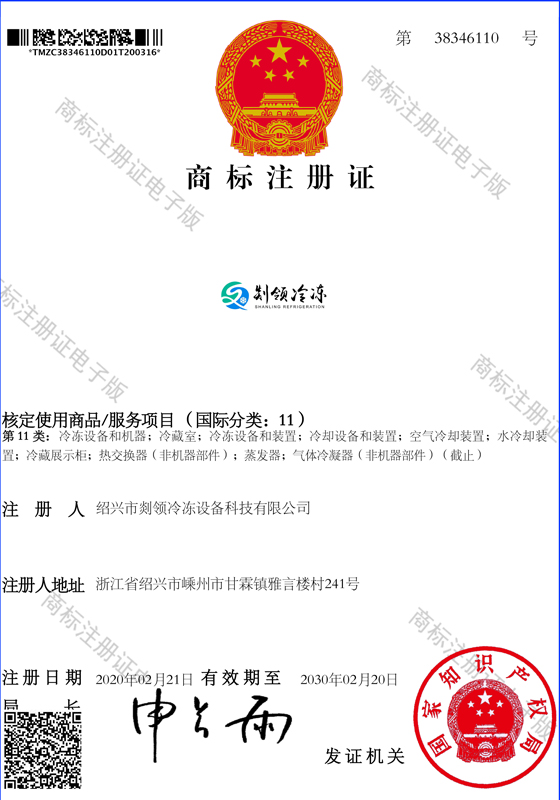 制冷配件商標注冊證書