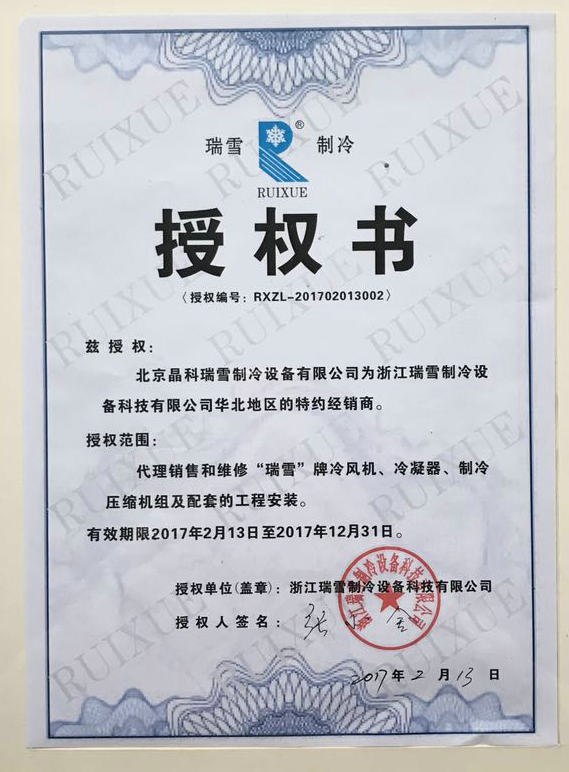 浙江瑞雪制冷科技有限公司華北地區(qū)經(jīng)銷商
